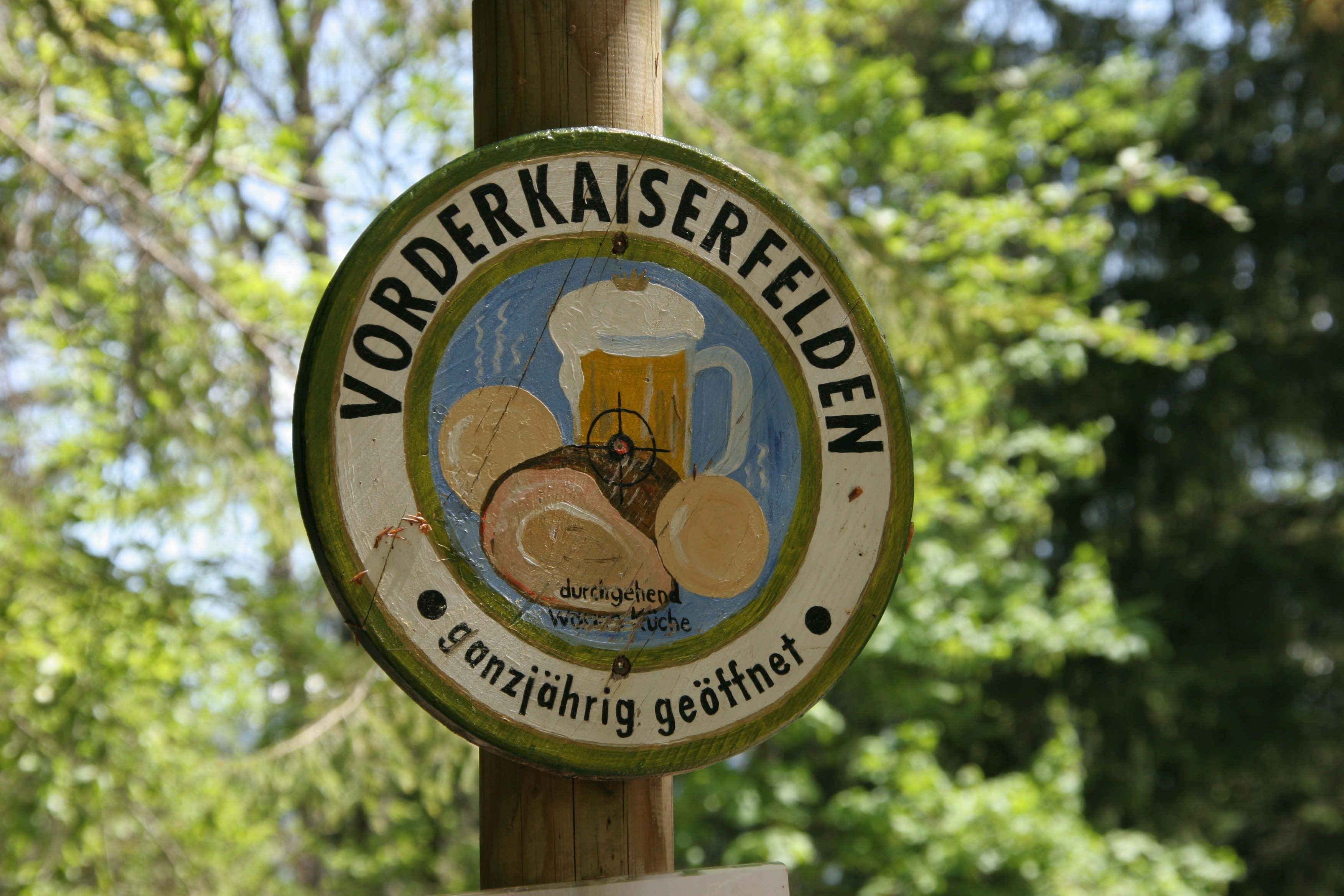 Die Vorderkaiserfelden ist eine urige Hütte mit guter Bewirtung. Rechts ein ausgestopftes Mankei.