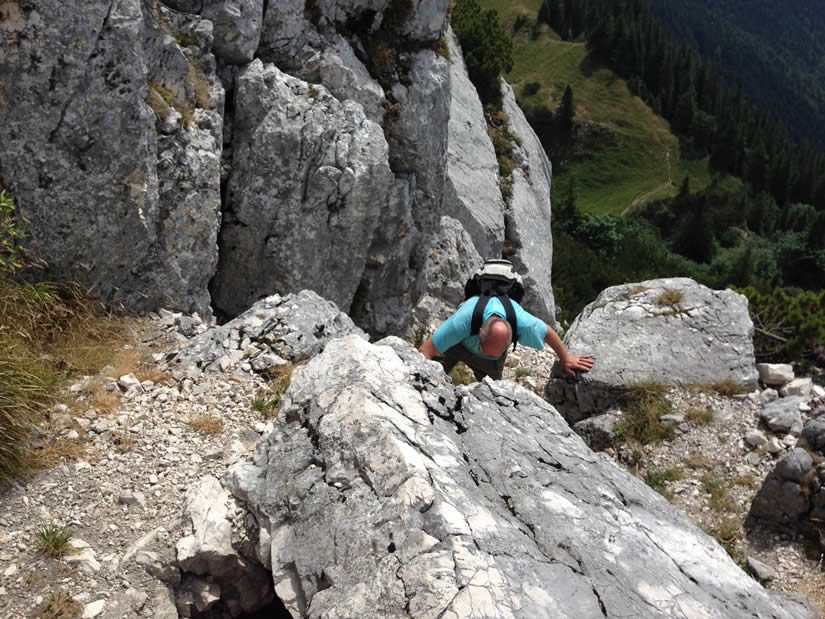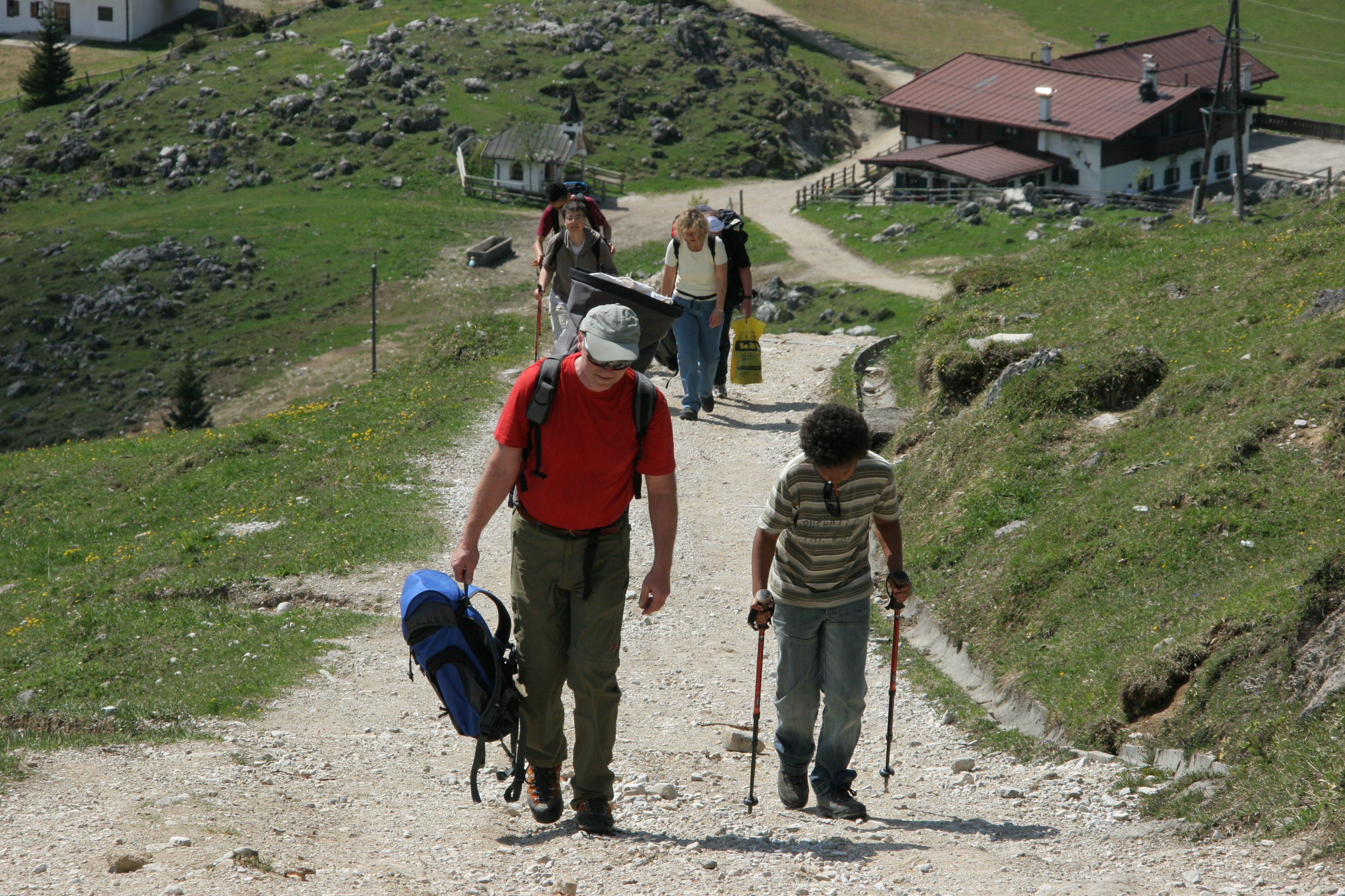 …der Kampenwand. Die Tour begann in Sachrang, Übernachtung auf der Priener Hütte. Am nächsten Tag auf den Geigelstein von dort nach Norden, Richtung Kampenwand. Abstieg nach Aschau, dann an der Straße entlang zurück nach Sachrang.